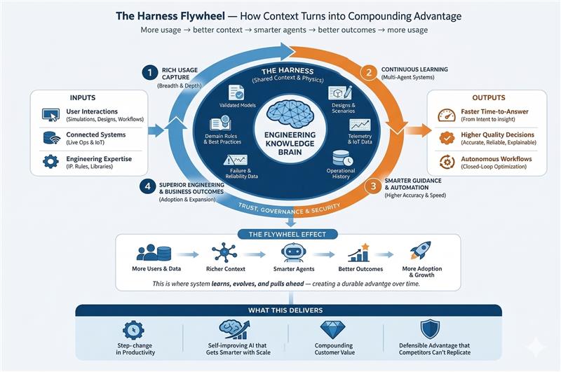 That is the Harness Flywheel: more usage creates richer engineering context; richer context enables better guidance and smarter automation; better outcomes increase trust and adoption; and greater adoption generates more high-value context in return. This is why Modelon’s opportunity is broader than task automation. The goal is not only to help engineers work faster in the moment. It is to build a simulation-driven system that gets better as it is used: better at framing studies, better at applying engineering context, better at recognizing familiar issues, and better at producing evidence-backed decisions.